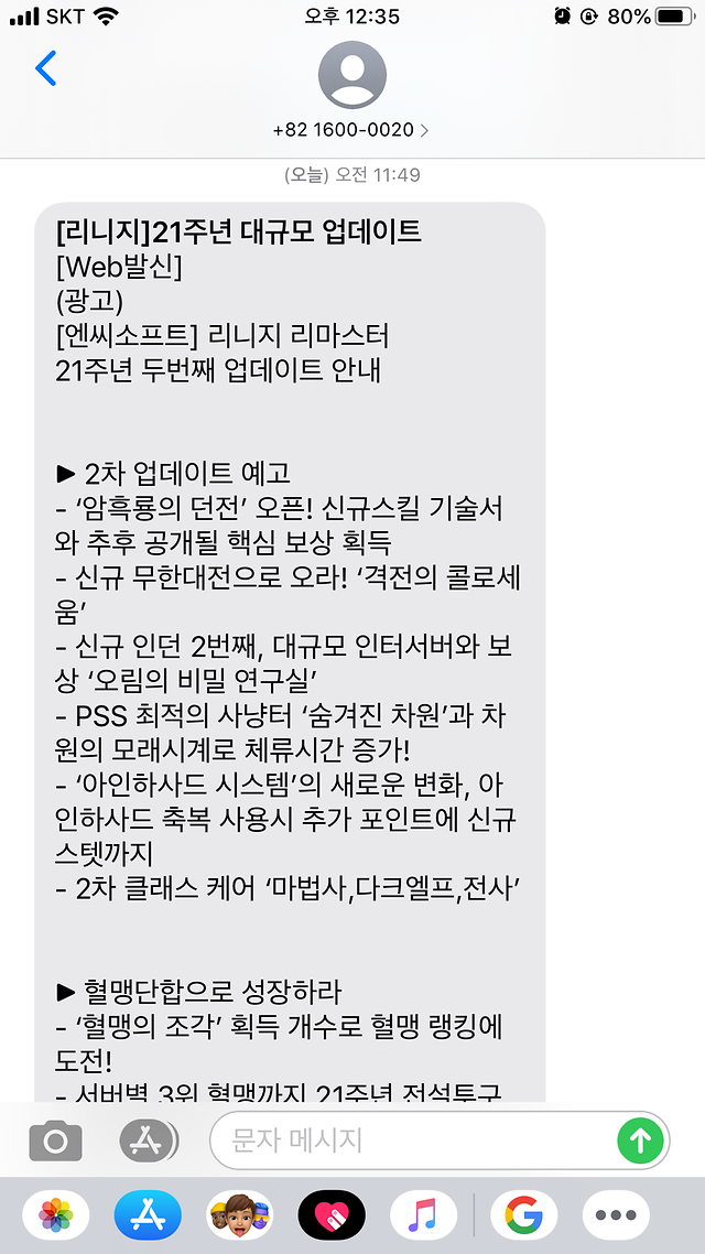 사전예약 보상 및 진행 일정은 진행 상황에 따라 변경될 수 있습니다. 사전예약 서비스 제공을 위해 아래 업체에게 문자 메시지 발송 업무를 위탁하고 있습니다. 본문 바로가기1 본문 바로가기2 본문 바로가기3. 휴대폰 문자 스팸 기능 또는 lms 차단 기능이 설정되어 있을 경우 정상적으로 문자를 받을 수 없으니 유의 부탁드립니다. 080 수신 거부 중인 번호로는 문자 발송이 불가하므로 수신 거부 확인 요청 드립니다.